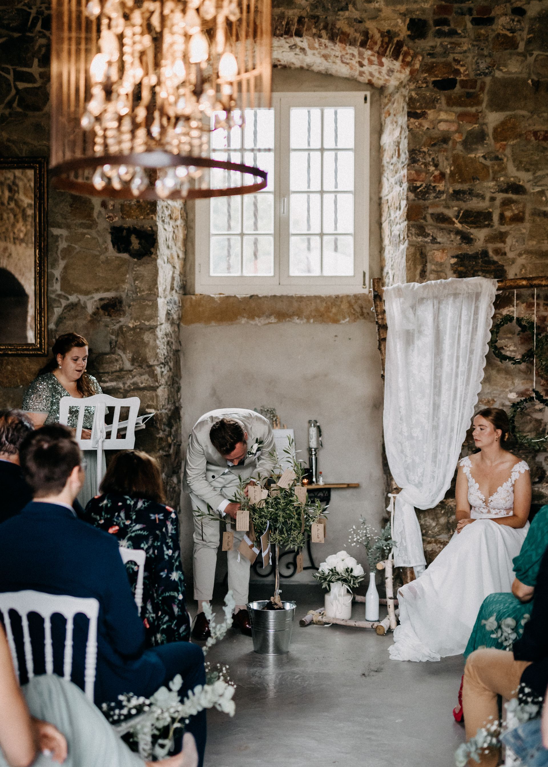 Bei Lena und Phil haben wir ein Olivenbäumchen gepflanzt, denn die Beiden reisen gerne und ein sehr beliebtes Ziel ist für Sie die Toskana. Dort wo auch der Olivenbaum ein passendes Klima zum gedeihen gefunden hat. Auch steht ein Olivenbaum für Beständigkeit, Liebe und Treue und ich finde, dass kann man einem Brautpaar gut mit auf den Weg geben.